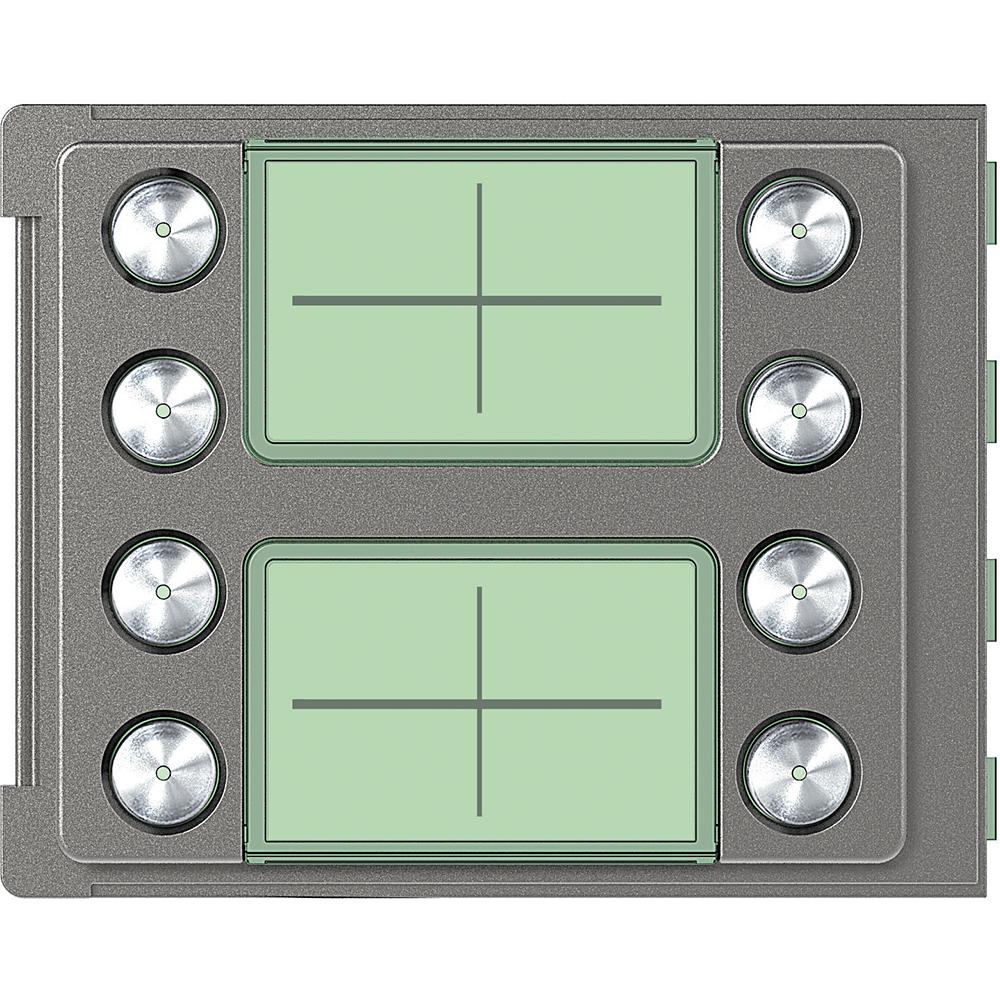 Kryt pro modul 352100 - tlačítkový modul - 8x tlačítko, dvou sloupcové provedeníTyp moduluKryt moduluModularitaAnoPočet modulových pozic1Designová řadaRoburMontážZápustnáMontážPovrchováStupeň krytíIP54Mechanická odolnostIK10 ...