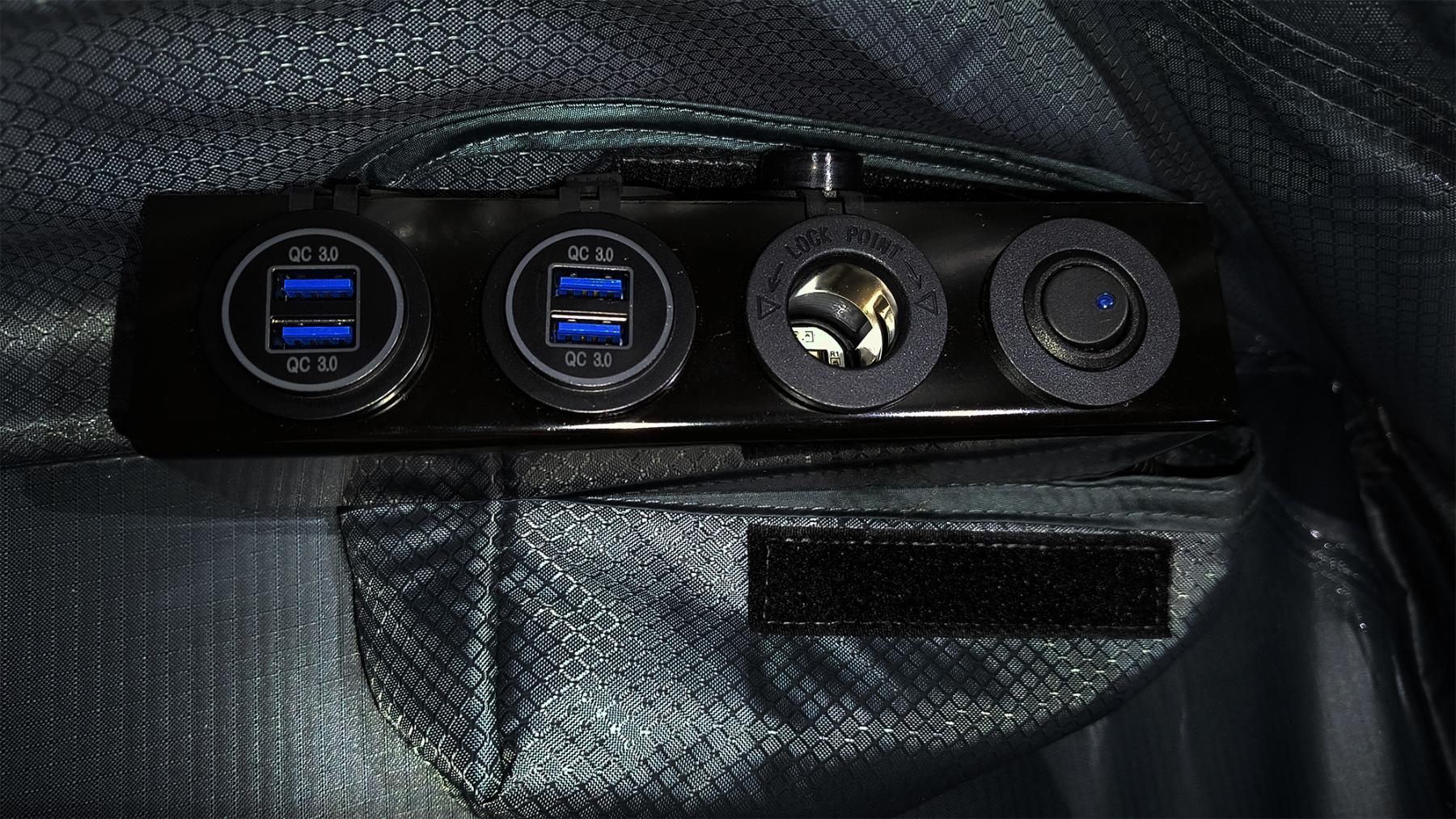 Jednou z hlavních výhod tohoto autostanu je integrovaný připojovací panel, který umožňuje napájení Vaší elektroniky kdykoliv potřebujete.