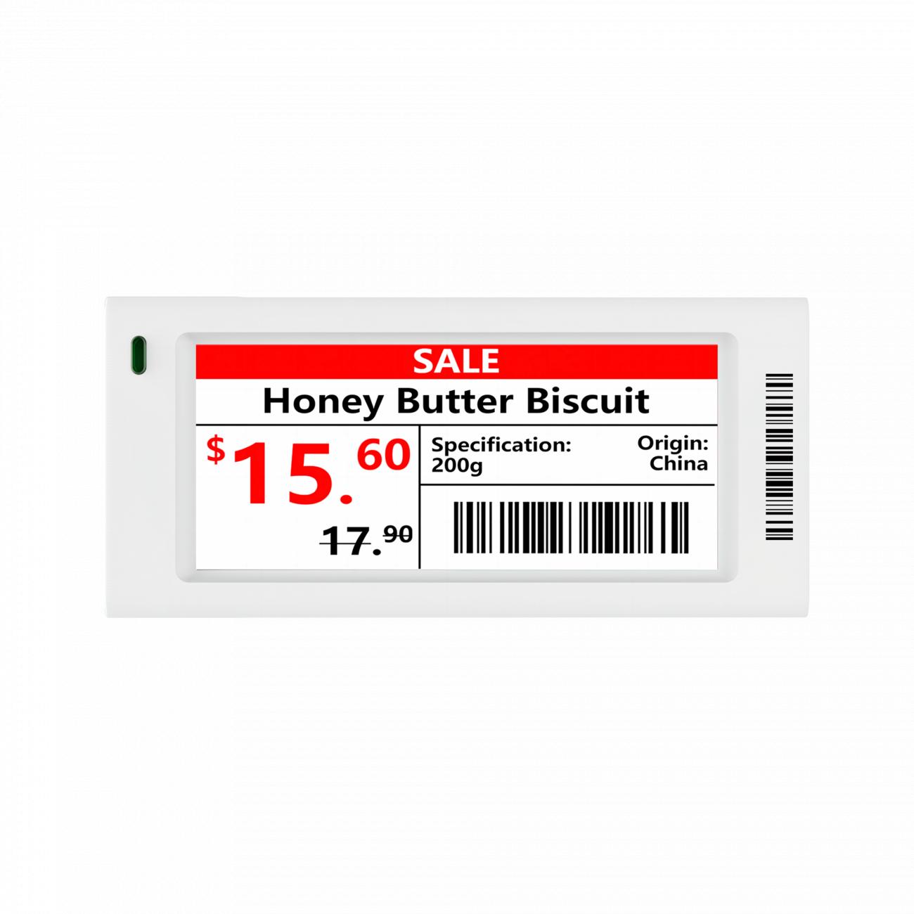 Elektronický digitální papír ESL velikost 2.9" pro maloobchodní regálové štítky, kombinace barev černá, bílá, červená. Komunikace s obslužným AP pomocí správy na Cloud účtu a SW třetích stran přes API rozhraní. Napájení 2x...