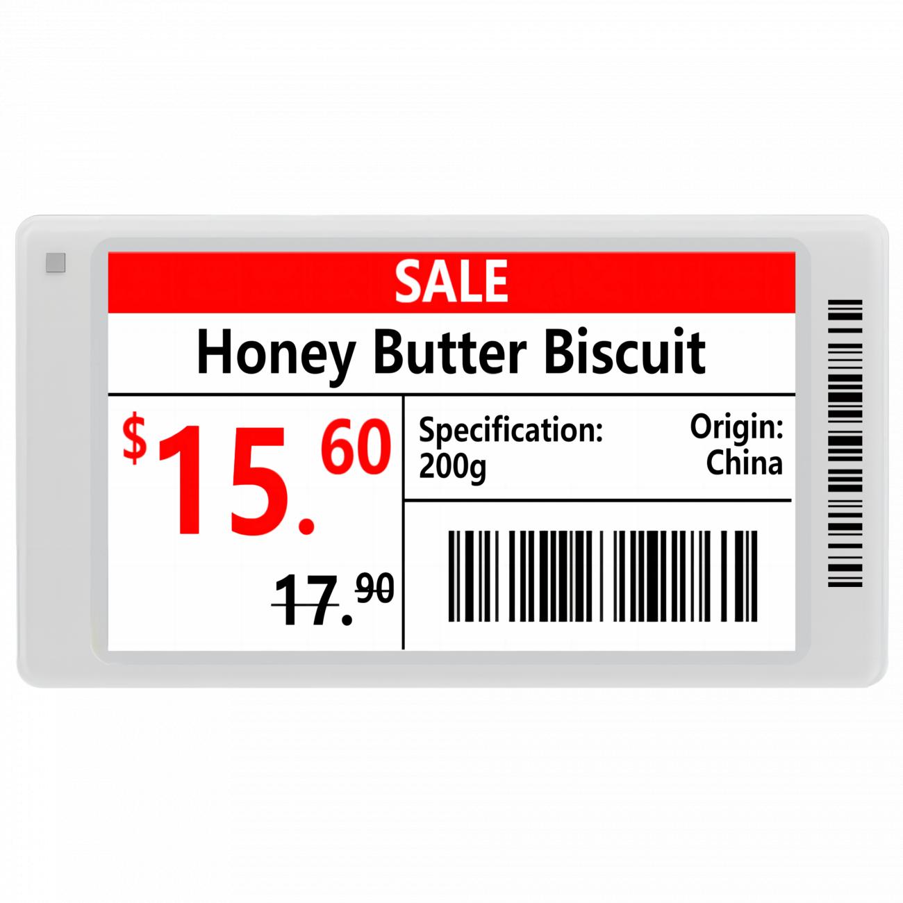 Elektronický digitální papír ESL velikost 3.7" pro maloobchodní regálové štítky, kombinace barev černá, bílá, červená, NFC. Komunikace s obslužným AP pomocí správy na Cloud účtu a SW třetích stran přes API rozhraní....