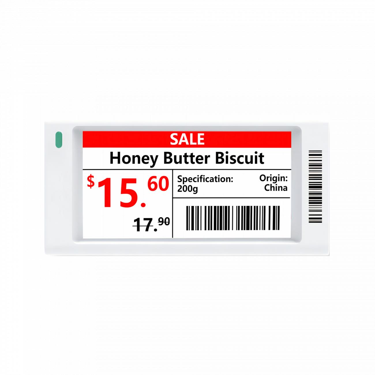 Elektronický digitální papír ESL velikost 2.6" pro maloobchodní regálové štítky, kombinace barev černá, bílá, červená, NFC. Komunikace s obslužným AP pomocí správy na Cloud účtu a SW třetích stran přes API rozhraní....