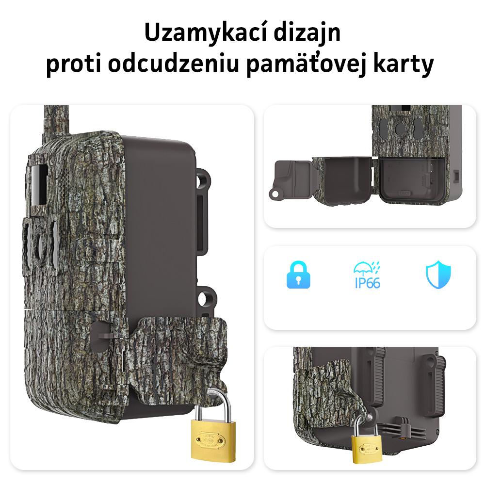 - Ovládanie cez mobilnú aplikáciu (Android alebo iOS): Zobrazenie a vymazanie obrázkov/videí, Správa nastavení fotopasce, Sledovanie batérie a mobilného signálu, Zdieľanie do ľubovoľného telefónu...