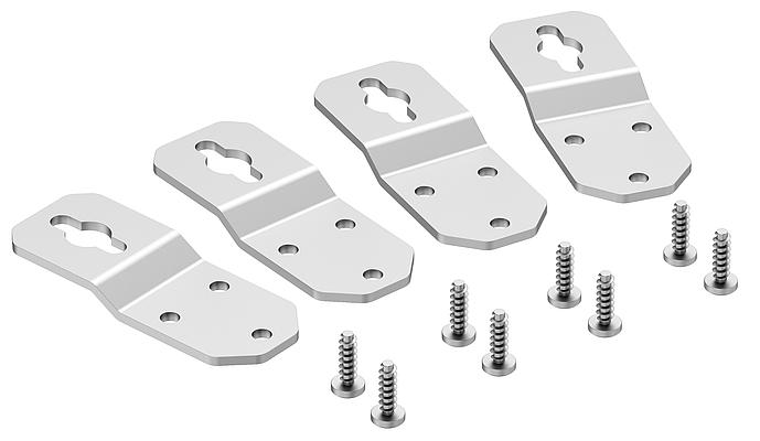Sada vnějších úchytů z ušlechtilé oceli V4A, možná montáž v úhlu 0° nebo 90°, sada = 4 ks, Vzdálenost od stěny 10 mm Rozměry: 35 x 90 x 8,5 mm