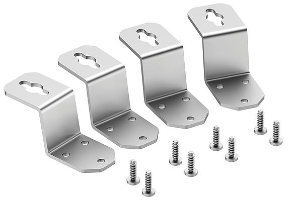 Sada vnějších úchytů z ušlechtilé oceli V4A, možná montáž v úhlu 0° nebo 90°, sada = 4 ks, Vzdálenost od stěny 40 mm Rozměry: 35 x 90 x 38,5 mm