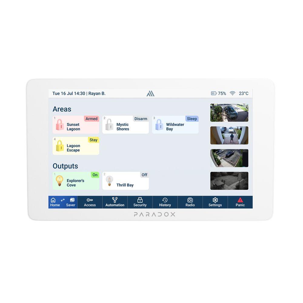 Typ klávesnicebezdrátová, 7" dotyková, kapacitníPoužití v systémuovládacíBezdrátová komunikaceRF, Wi-Fi B/G/NNapájení12 VDC, max. 300 mAZáložní akumulátorLi-Ion, 800mA (součást balení)Frekvence868 MHzBezdrátový...