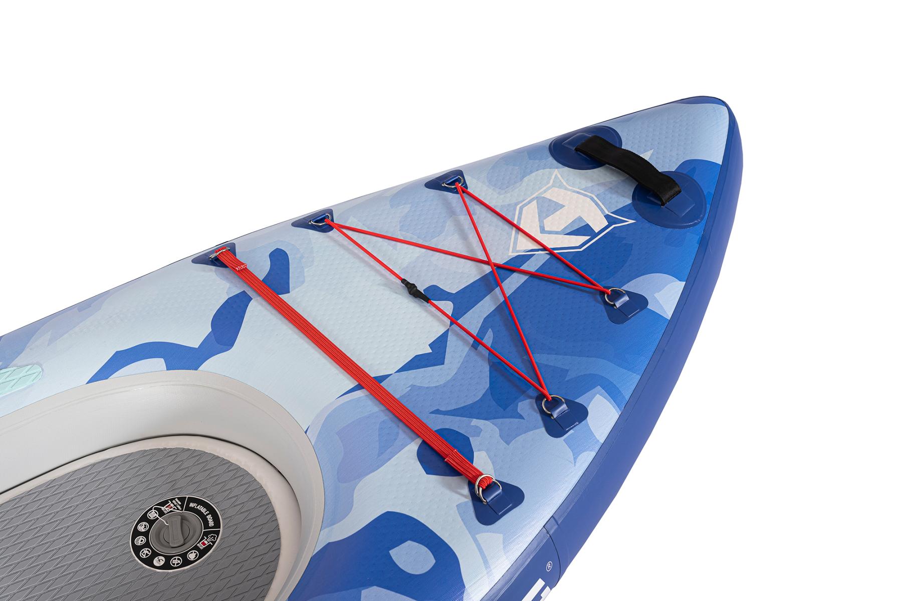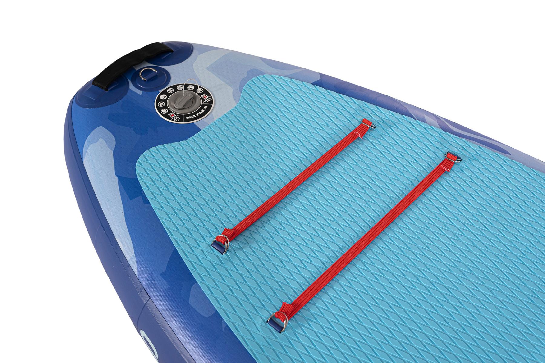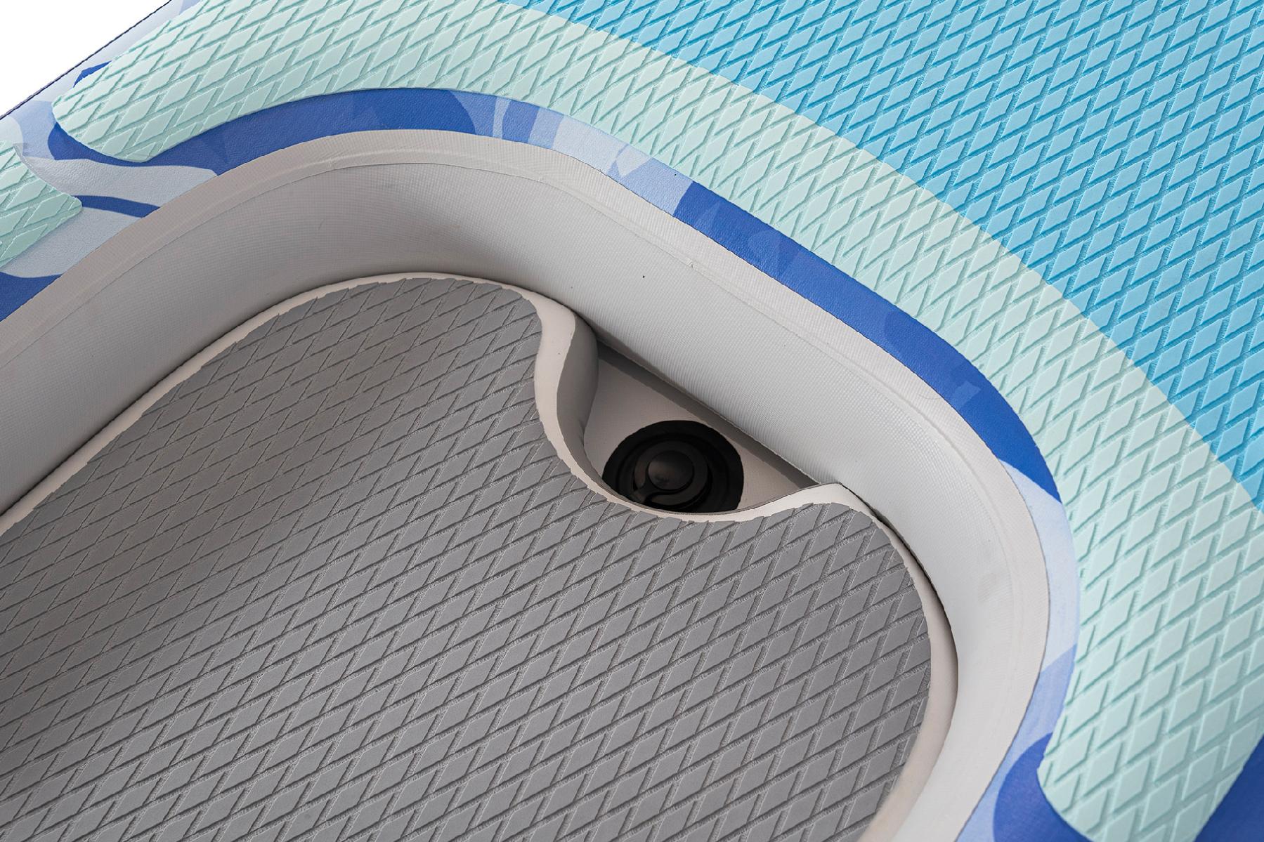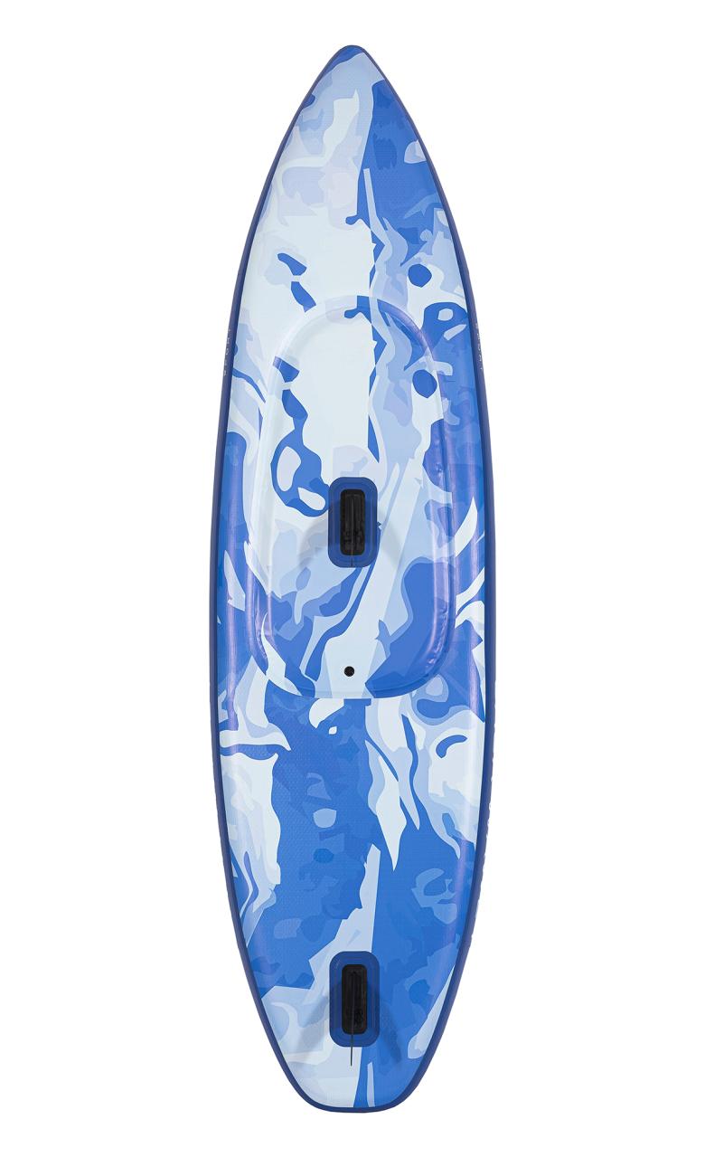 Kajak zaujme výrazným vodním motivem v odstínech modré, který připomíná pohyb vln a dokonale ladí s vodním prostředím. Je vybaven integrovaným sedacím prostorem určeným pro jednoho jezdce. Spodní strana obsahuje dvě ploutve, které zajišťují lepší stabilitu a snadnější ovládání během jízdy.