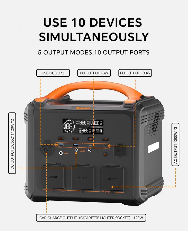 OXE Powerstation Newsmy S1210P je multifunkční nabíjecí elektrocentrála, která představuje ideální řešení pro spolehlivý a ekologický zdroj energie. Díky své vysoké kapacitě a širokým možnostem připojení je vhodná pro celou řadu scénářů, ať už jde o použití na cestách, při kempování, v karavanu nebo jako záložní zdroj energie v domácnosti.