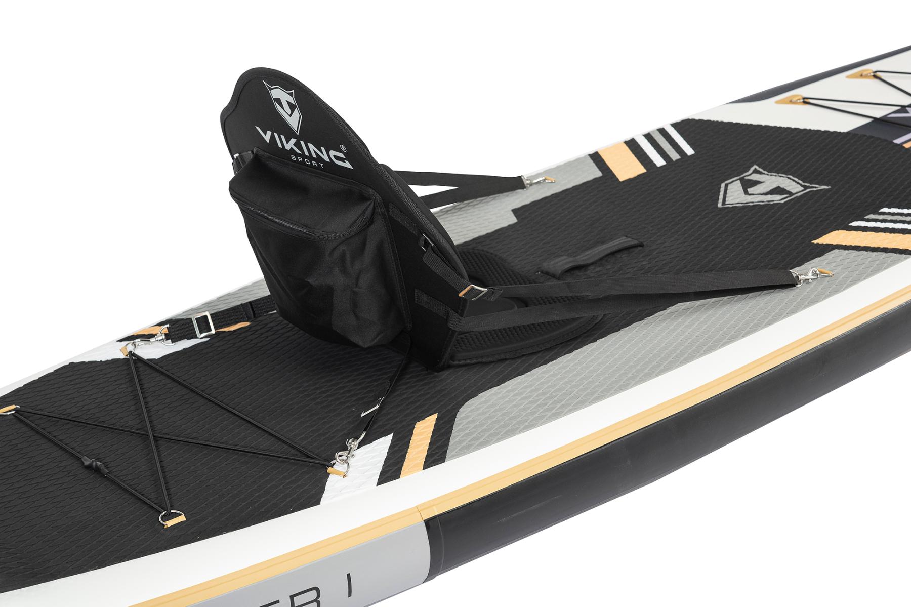 Paddleboard Viking Ice Raider I potěší bohatým nadstandardním příslušenstvím, díky kterému můžete vyrazit na vodu hned po rozbalení. V balení najdete odolný batoh, dvojčinnou pumpu s manometrem, trojdílné pádlo, kotníkový řemínek a náhradní ploutev. Nechybí ani pohodlné sedadlo pro jízdu vsedě, stojánek na telefon a opravná sada. Vše je navrženo pro maximální komfort a samostatnost na cestách.