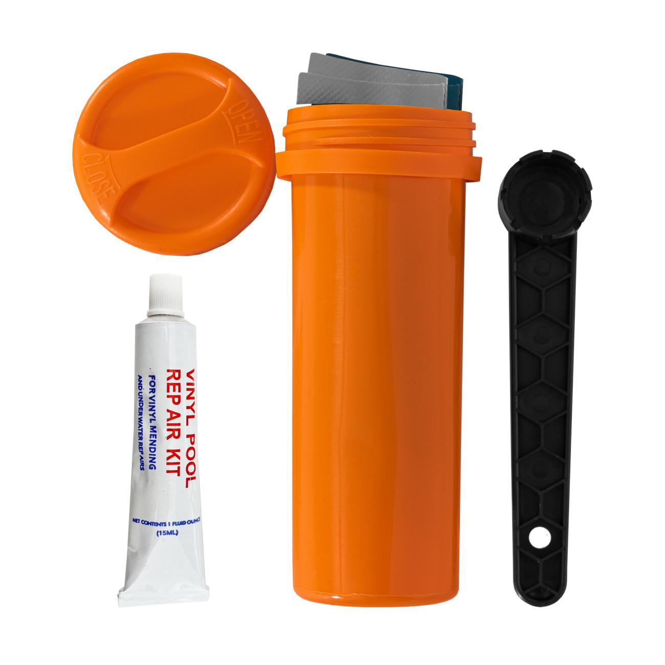 Opravná sada Viking je nezbytným doplňkem pro každého majitele paddleboardu či kajaku. V odolném, dobře viditelném oranžovém šroubovacím obalu o rozměrech 7 x 7 x 17,5 cm, najdete vše potřebné pro rychlou a snadnou opravu menších poškození.