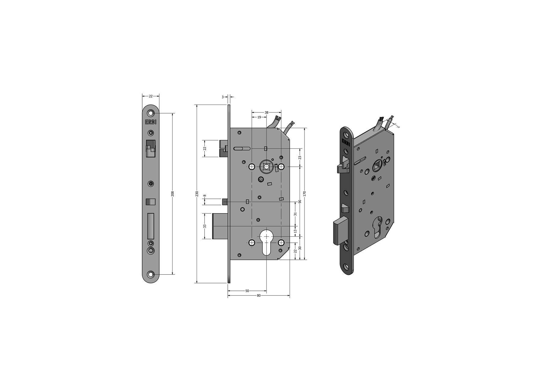| Vlastnosti | vzdálenost kliky od čela zámku (včetně lišty) 50 mm |