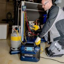 Zařízení Wöhler REC 400 Recovery je spolehlivým pomocníkem při odsávání chladiv třídy A1, A2 a A2L. K odsávání chladiva je navíc zapotřebí montážní pomůcka (např. Wöhler MR 400) a váha na chladivo (např. Wöhler RS...