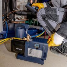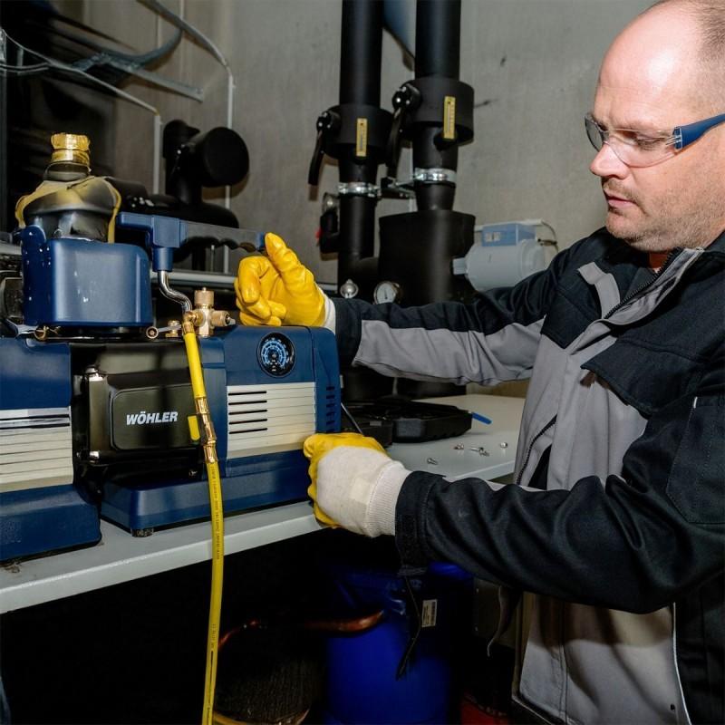 Wöhler VP 400 je výkonná dvoustupňová vývěva, která je vhodná pro použití ve všech běžných chladicích zařízeních a tepelných čerpadlech. Díky robustní konstrukci a rozmanitým možnostem připojení hadic pro chladiva nabízí maximální flexibilitu v každodenní práci.